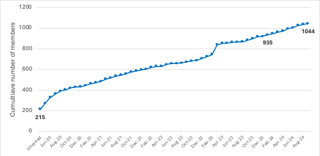 Figure 2. PAPREN membership growth, 2019-2024 funding cycle.